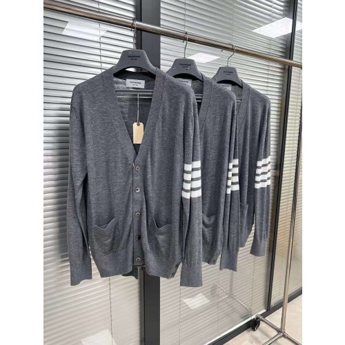 톰브라운 남녀 양모 클래식 사선완장 니트 가디건 그레이